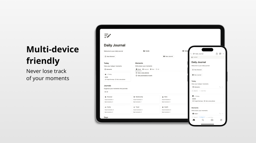 Never lose track of your moments by bringing your Daily Journal in your pocket.