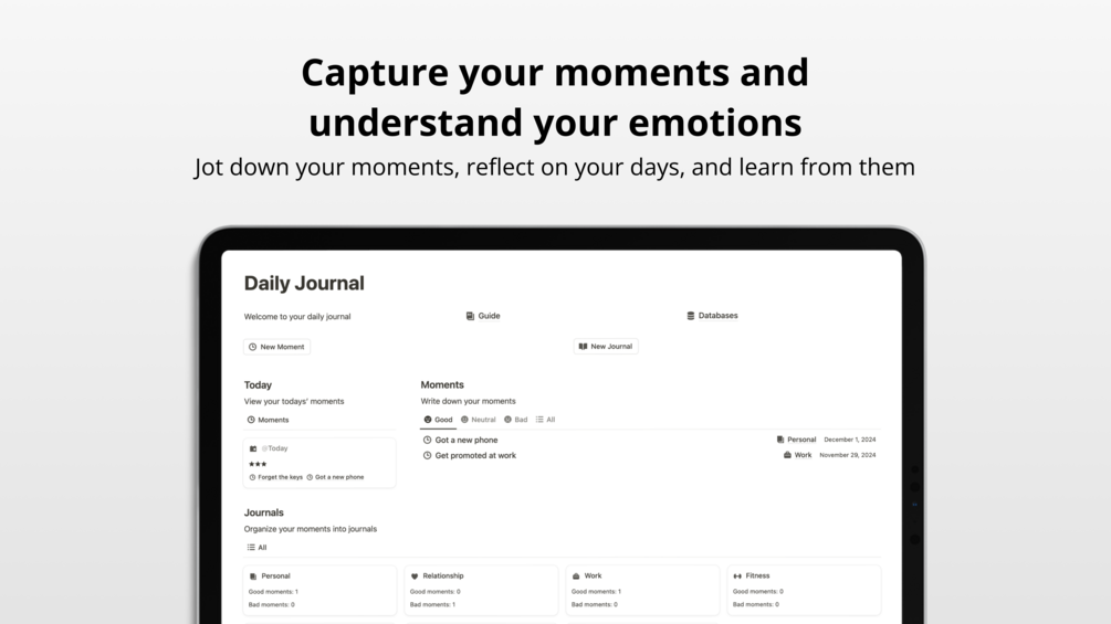 Easily capture your best and worst moments with the Daily Journal Notion template.