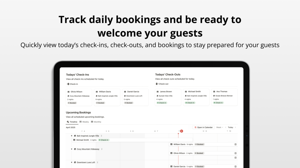 Track daily bookings and be ready to welcome your guests.
